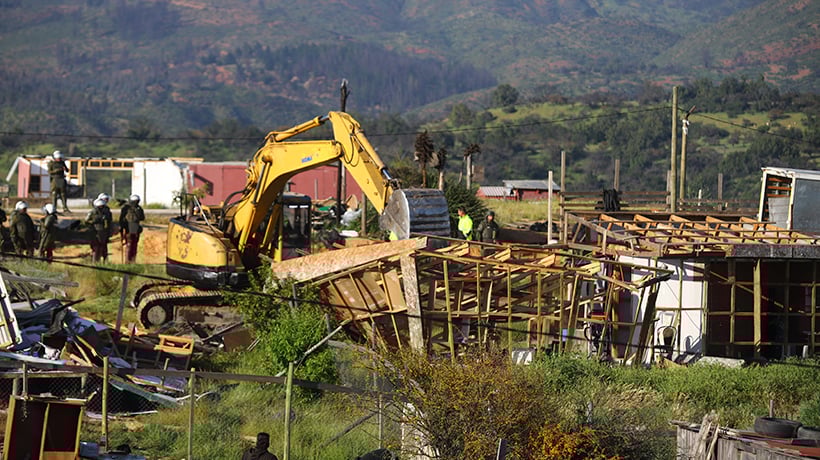 Con normalidad y sin mayores incidentes se desarrolló este martes la demolición de las construcciones irregulares en la toma Calicheros de Quilpué, ubicada en un terreno perteneciente a la familia del fallecido empresario Alejandro Correa.