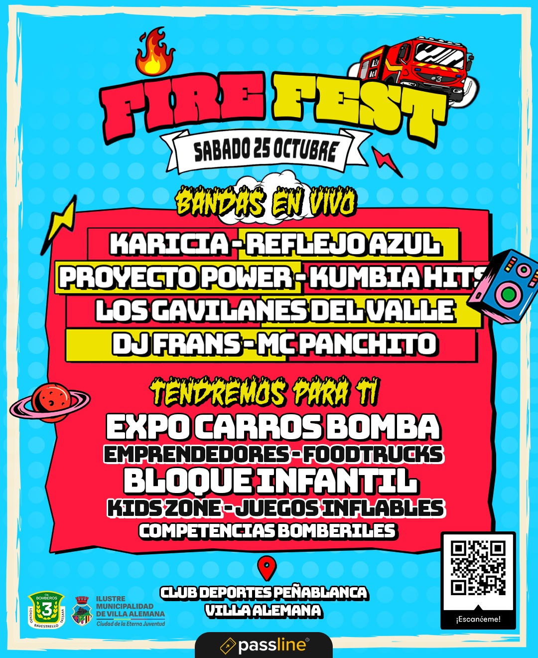 El Fire Fest 2025 es organizado por la Ilustre Municipalidad de Villa Alemana en conjunto con la Tercera Compañía de Bomberos de Peñablanca, reafirmando el compromiso de la comunidad con quienes día a día trabajan por la seguridad de todos.