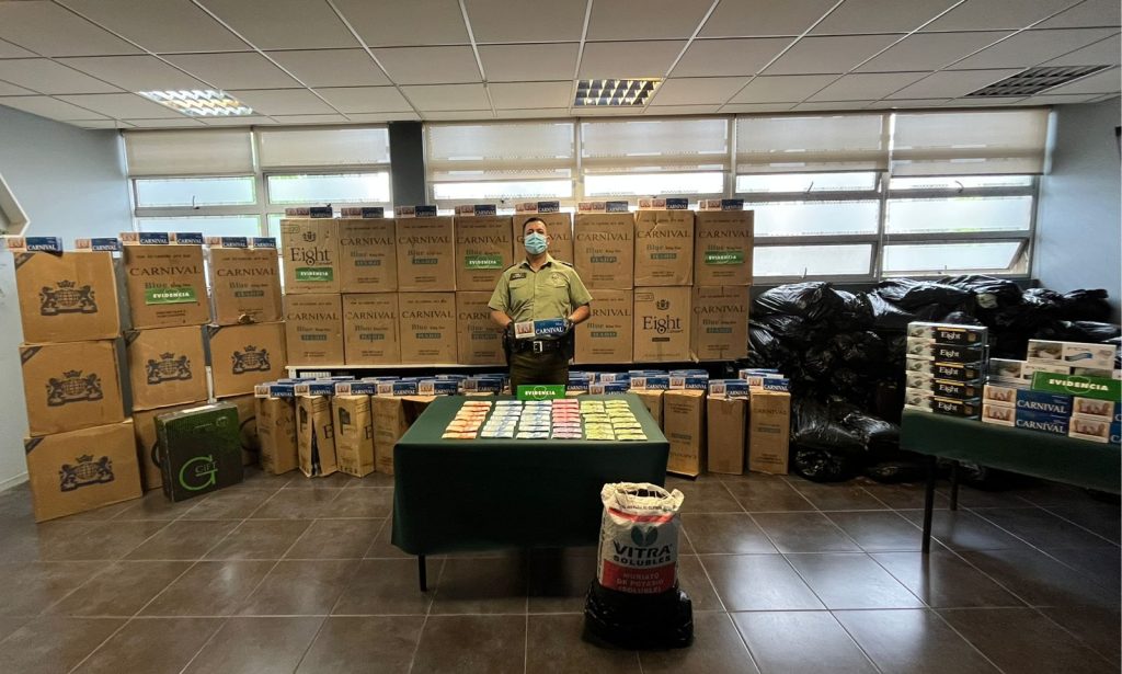 El grupo familiar, compuesto por seis integrantes, fue detenido en el lugar. Según informó Carabineros, el tabaco a granel incautado era utilizado para la fabricación de cigarrillos falsificados, los cuales no cumplen con las normas del Ministerio de Salud, representando un riesgo sanitario para la población.