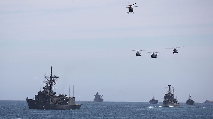 La Armada de Chile desarrolló este viernes 31 de octubre una navegación costera por la bahía de Concón, Viña del Mar y Valparaíso, en el marco del retorno a puerto base de sus unidades tras completar su entrenamiento anual en la zona sur del país.