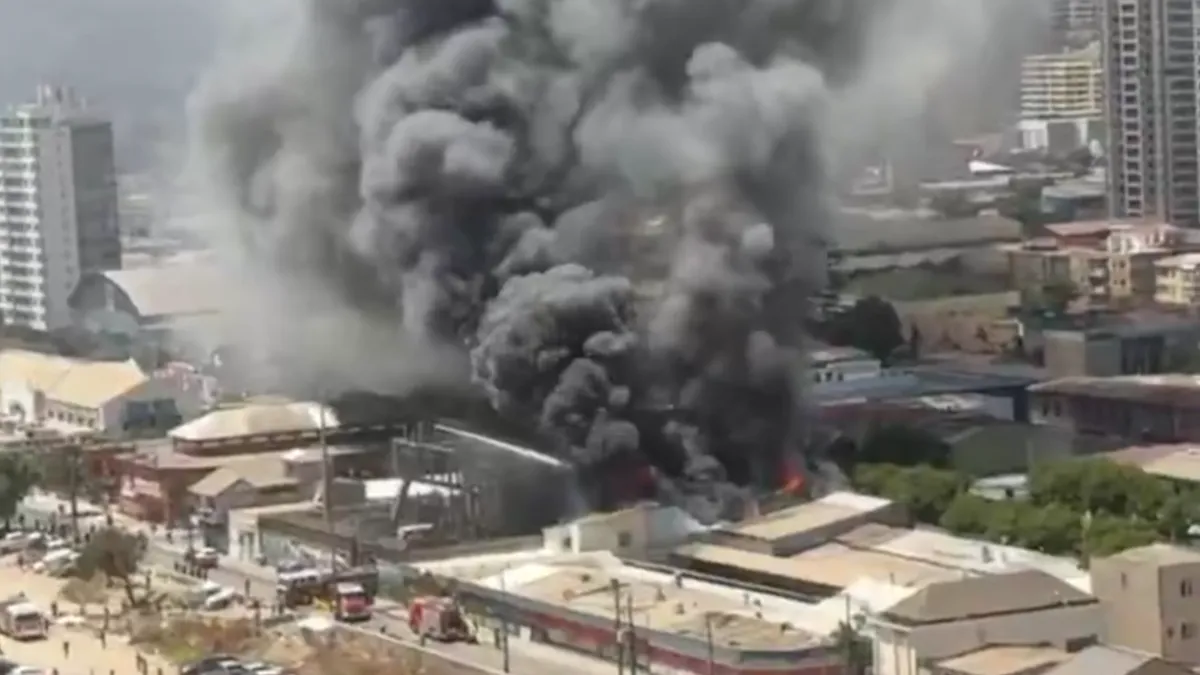 El comandante del Cuerpo de Bomberos de Viña del Mar, Sebastián Páez, señaló que “estamos trabajando en cuatro locales comerciales que ardían violentamente con un peligro de propagación inminente”.