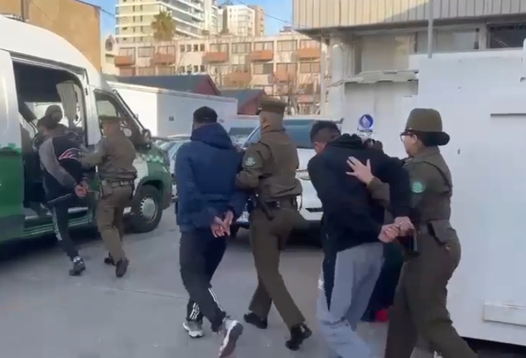 Carabineros logró interceptar y detener a los tres sujetos, además de un cuarto individuo que fue aprehendido en un punto cercano portando el teléfono celular de la víctima. Según se informó, el afectado fue abordado de manera sorpresiva, sufriendo la sustracción de su teléfono y una cadena, resultando con lesiones leves en el cuello.