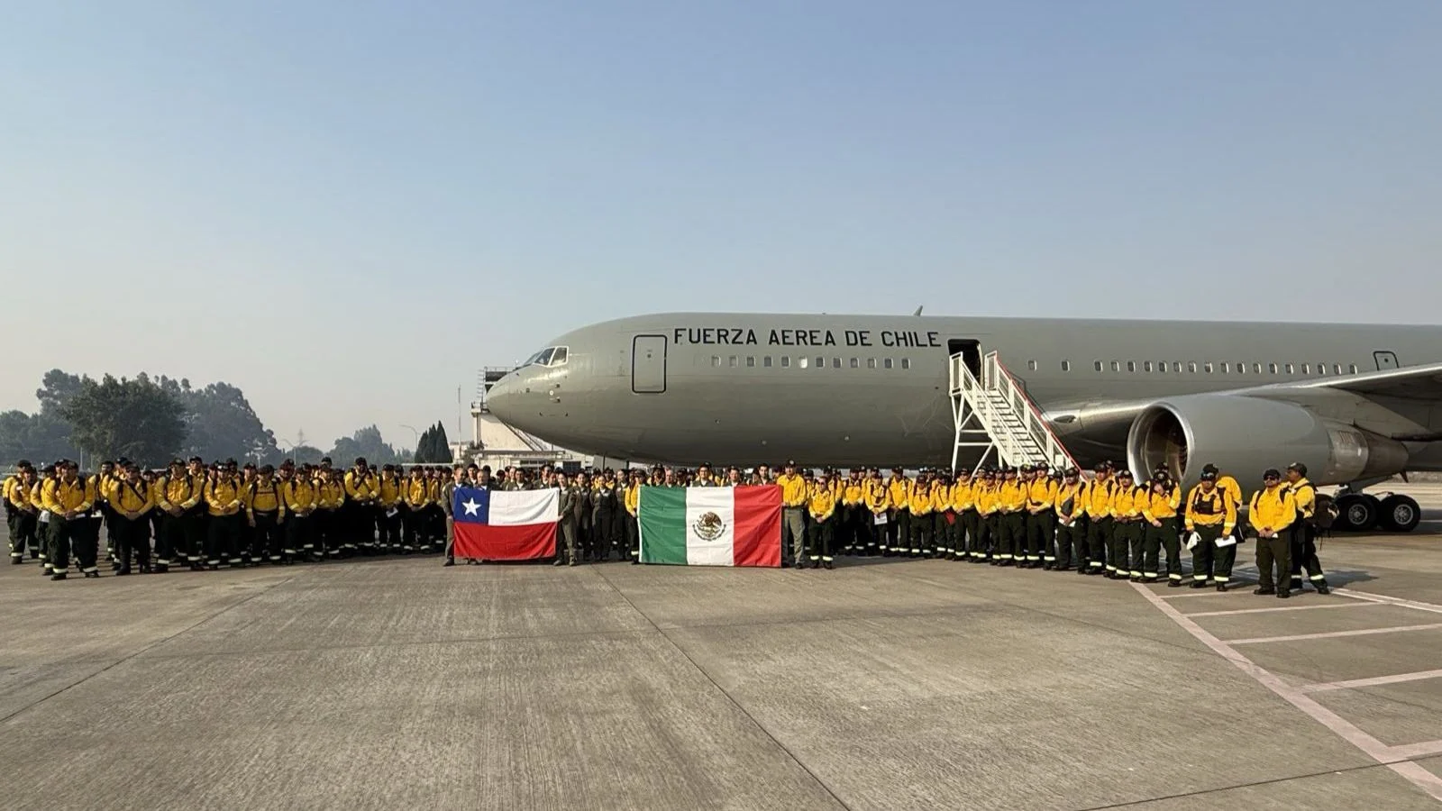 Durante la mañana de este jueves, 145 brigadistas mexicanos especializados arribaron al país para colaborar directamente en el combate de los incendios. El contingente aterrizó en la ciudad de Concepción, junto a más de 360 kilos de equipamiento técnico, gracias a una coordinación entre la Cancillería, el Ministerio de Defensa, Conaf y la Fuerza Aérea de Chile.